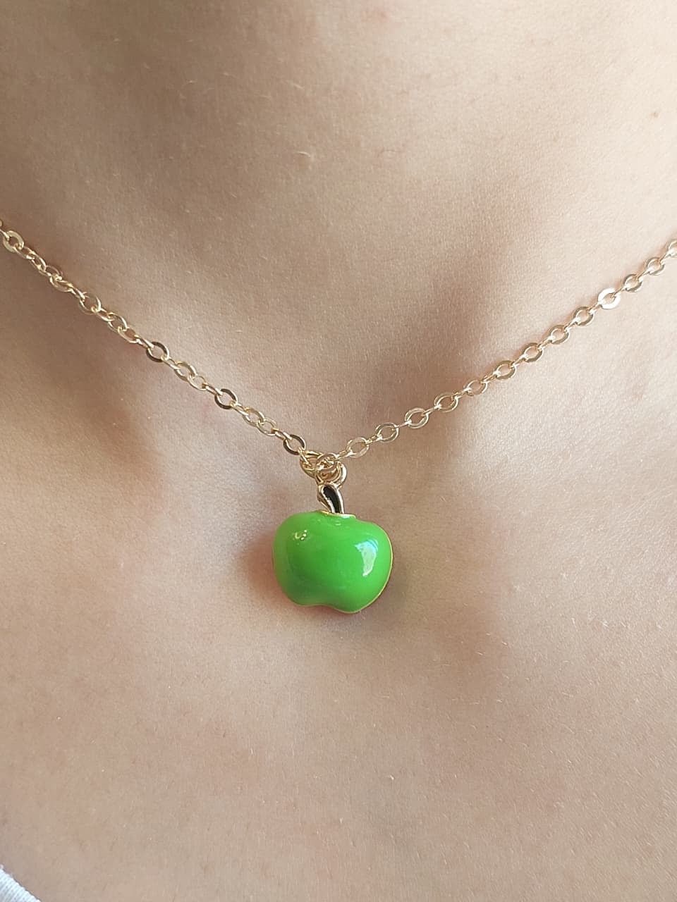 Apple necklace is subtle yeteye-catching.